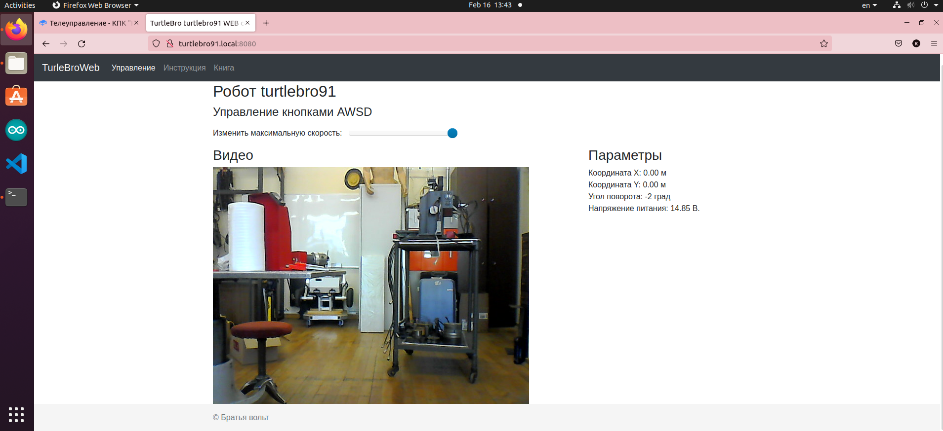На роботе запущено небольшое веб-приложение, которое позволяет управлять роботом прямо из браузера. Откройте в браузере адрес: http://ip_робота:8080