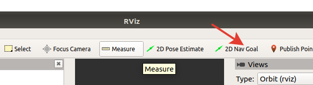 Давайте "запустим" нашего робота, чтобы он проехал несколько сантиметров вперед. Для этого воспользуемся инструментом rviz "2D Nav Goal". Укажем точку впереди робота. Если все настроено правильно робот должен самостоятельно доехать до указанной точки.