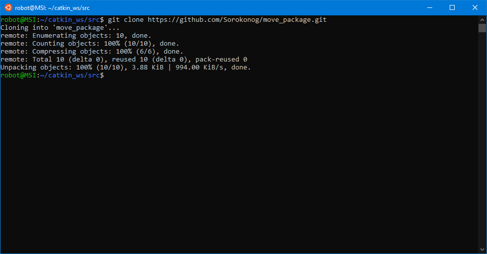 Давайте перейдем в папку catkin_ws/src и склонируем найденный пакет в эту папку.