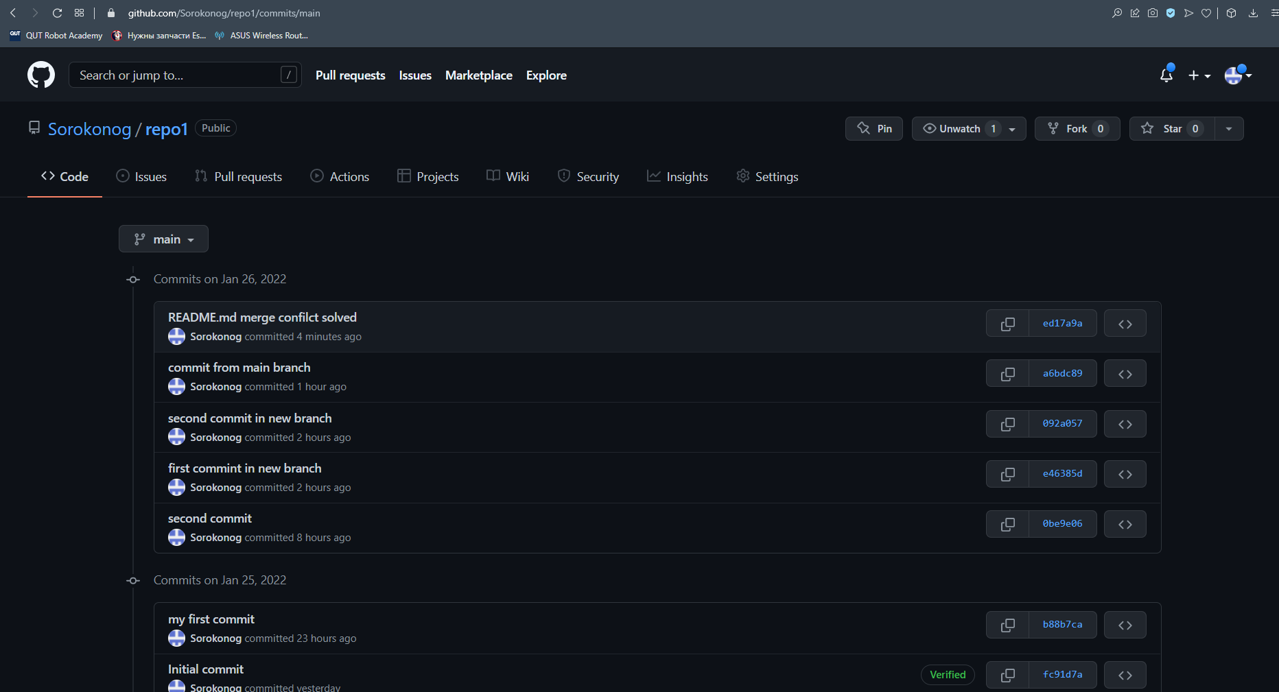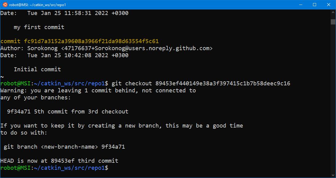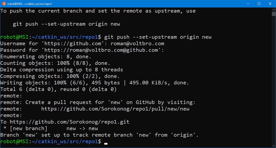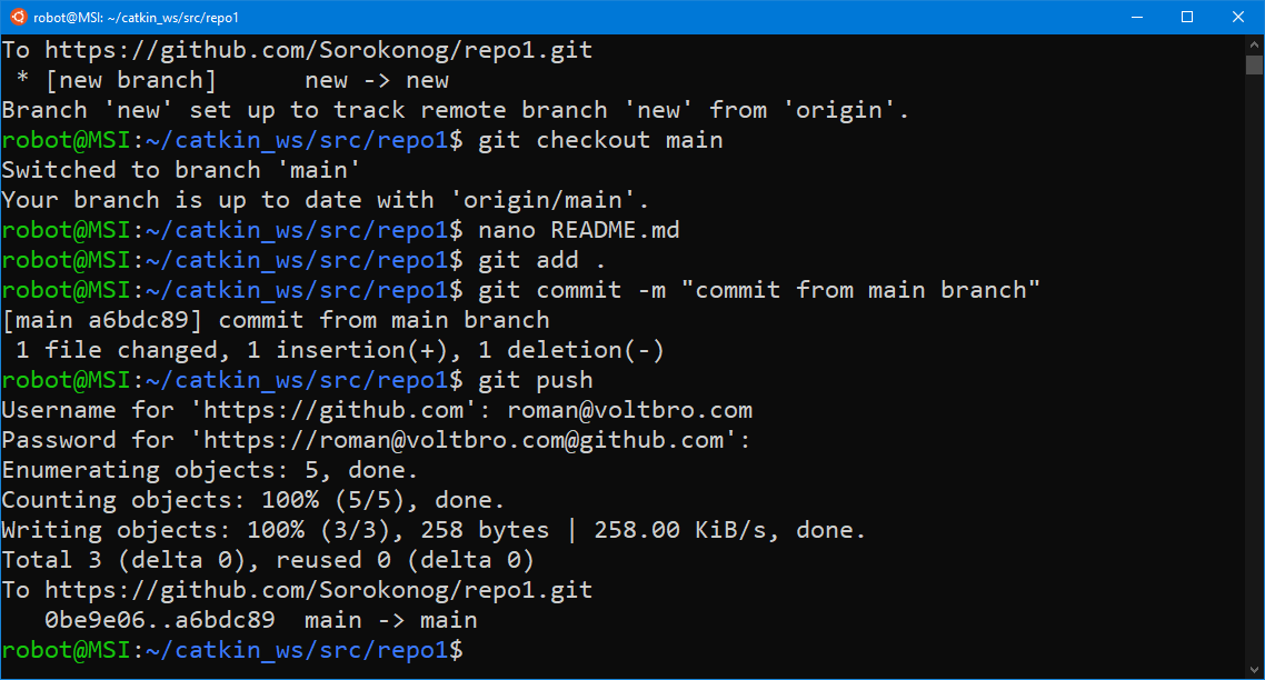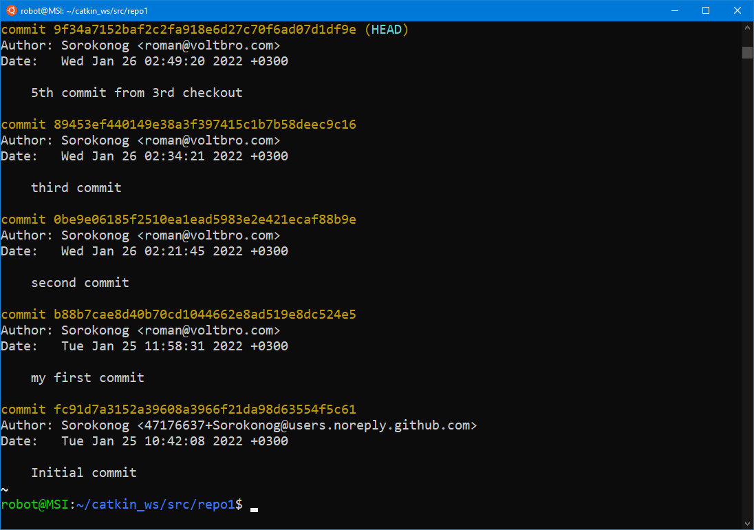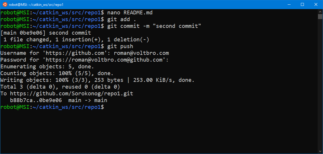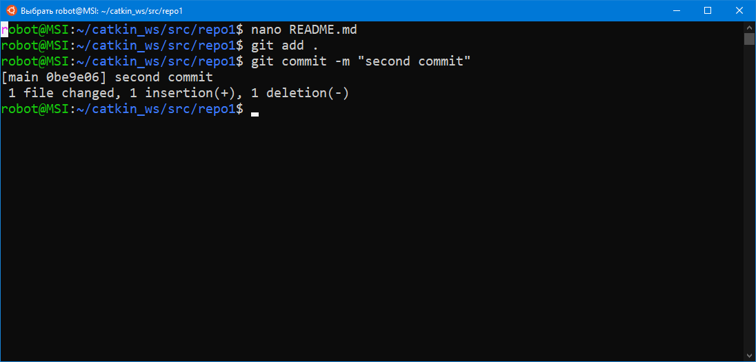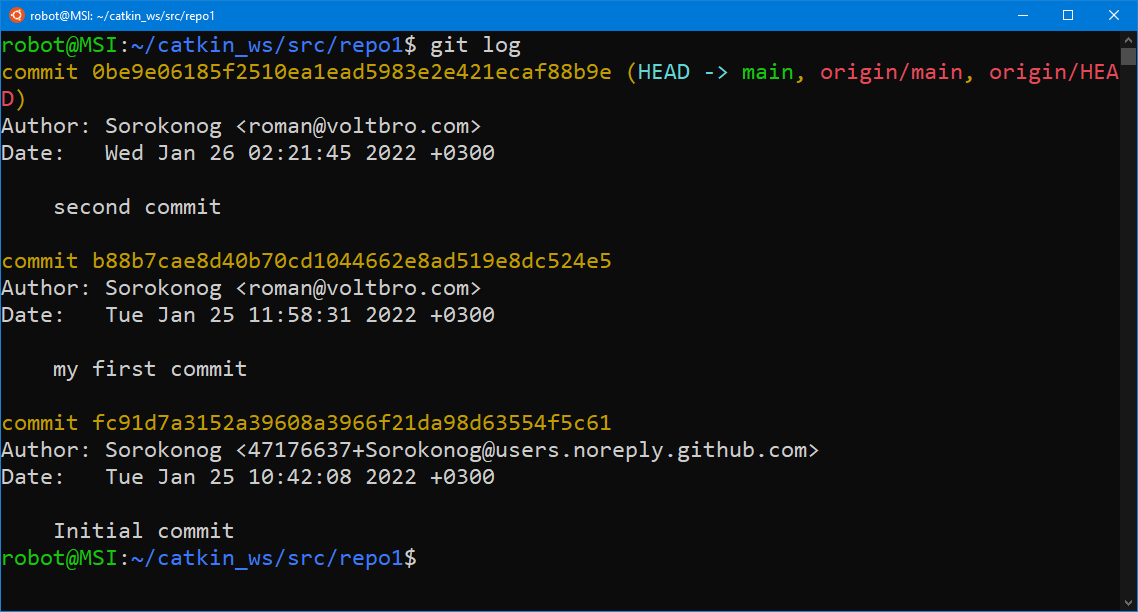 На этом мы закончим наш пример работы с git. Переходите к изучению базового курса по ROS.