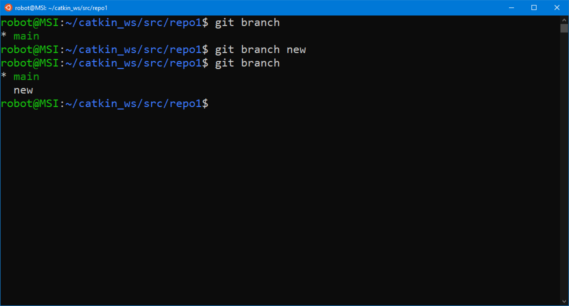 Теперь у нас две ветки main и new. Давайте переключимся в ветку new, сделаем там пару коммитов и зальем все на удаленный репозиторий.