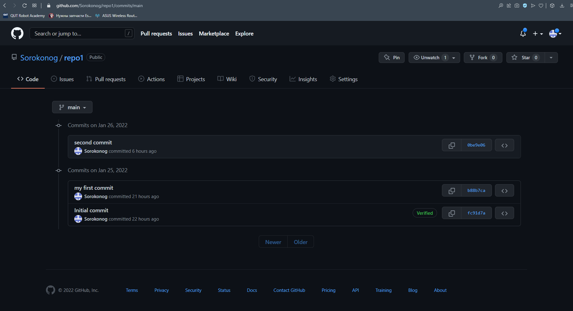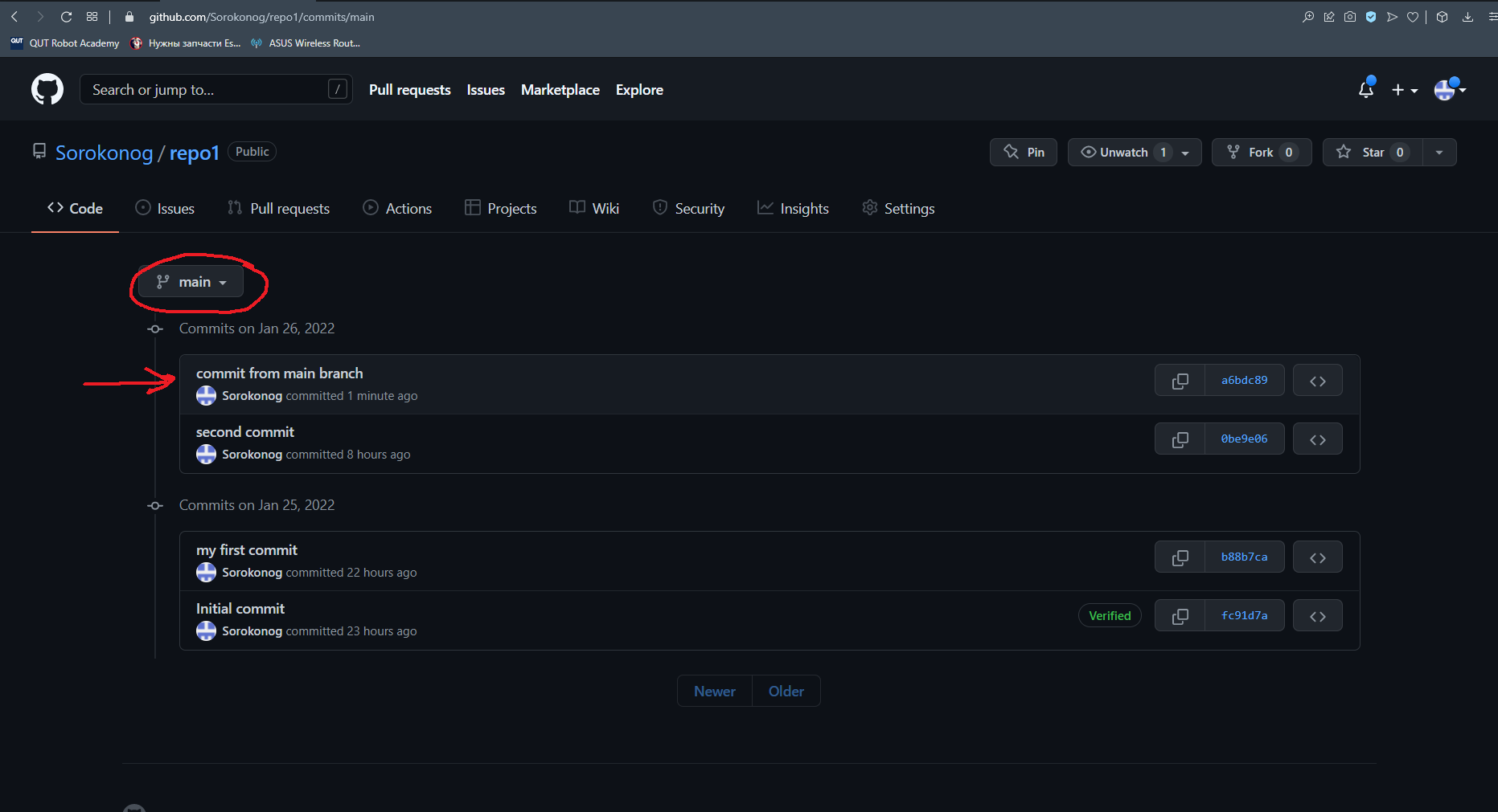 Посмотрим как ветка main выглядит на GitHub