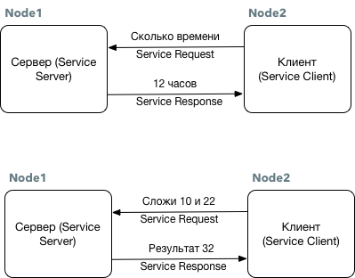 Сервер отвечает только тогда, когда есть запрос (Service Request) и клиент, который может получить ответ (Service Response). В отличие от модели работы с топиками, модель сервис работает с "одноразовыми" соединениями. Поэтому, когда цикл запрос и ответ завершен, соединение между двумя нодами будет прервано.