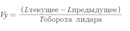 Для реализации наших пожеланий нам надо знать величину и направление скорости робота относительно стены. Используем для этого данные лидара. Скорость относительно стены можно вычислить по формуле: