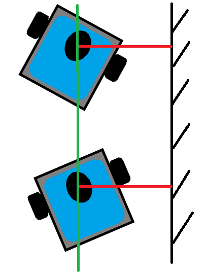 Во втором случае, робот едет от стены, но по той-же причине угловая скорость - тоже нулевая.